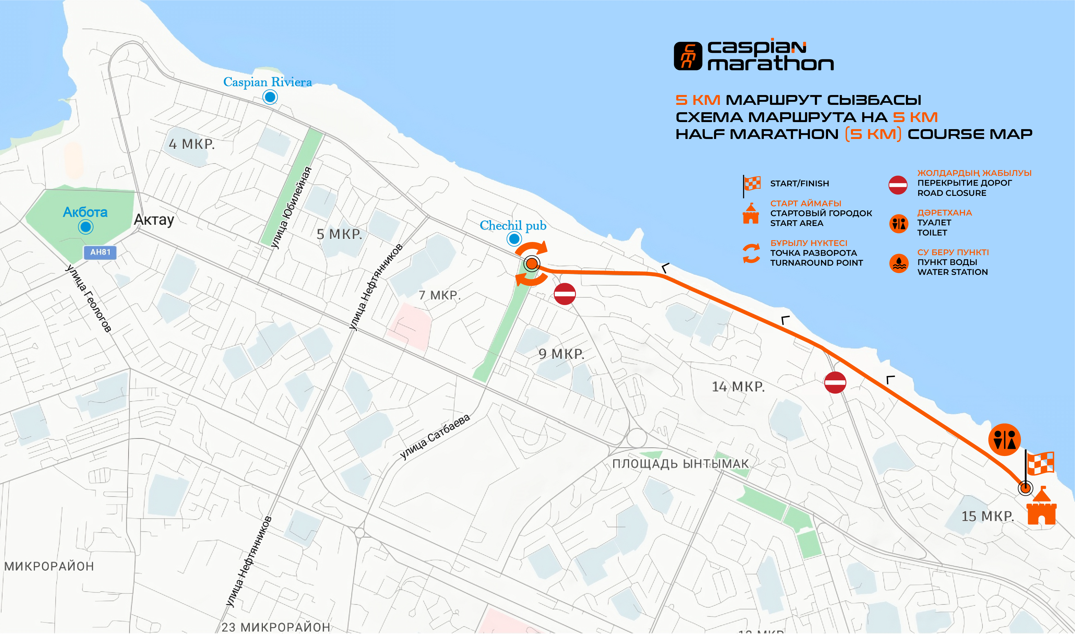 Aktau Half-Marathon 2026 аясында келесі қашықтықтар ұсынылады:
